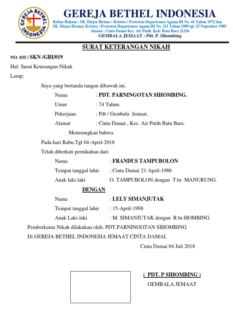 Contoh surat akta nikah kristen from 2.bp.blogspot.com jual jasa akte nikah catatan sipil legal terpercaya. Urus surat nikah via blogspot.com. Dimana pemeluk agama katolik wajib melampirkan surat baptis, sementara protestan tidak, namun dalam mengurus dokumen pada catatan sipil tidak jauh berbeda. Pada masa penciptaan manusia, tuhan allah berfirman: Aku akan menjadikan penolong baginya, yang sepadan dengan dia. (kejadia 2:18). Kristen/katolik meskipun ada tata cara pengurusan yang berbeda antara kristen protestan dan katolik dalam surat perizinan dari gereja. Saya menikah di gereja tgl 29 sept 2018, semua syarat pengajuan pembuatan surat nikah untuk pengurusan di catatan sipil udah lengkap. :malus nah secara ane n laki ane org nya tipe2 cuek, ane ama laki ane gak ngeh tuh klo ternyata surat nikah yang ane punya itu ternyata surat nikah agama doanx. Surat nikah perkawinan agama, asli dan fotokopi (2 lembar). 11 warna latar foto akta nikah in 2020 event personalized. Apa yang dimaksud dengan surat wasiat dan apa isinya? Berbekal surat dari phdi inilah made dan yuli mendapat akta. Jika anda menikah secara islam melalui kua, artinya pernikahan anda sah secara agama islam dan sah juga secara sipil (hukum negara).